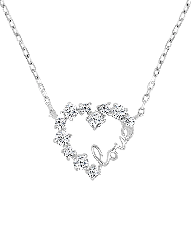 Unwritten Cubic Zirconia Round with Heart Accent Pendant Necklace