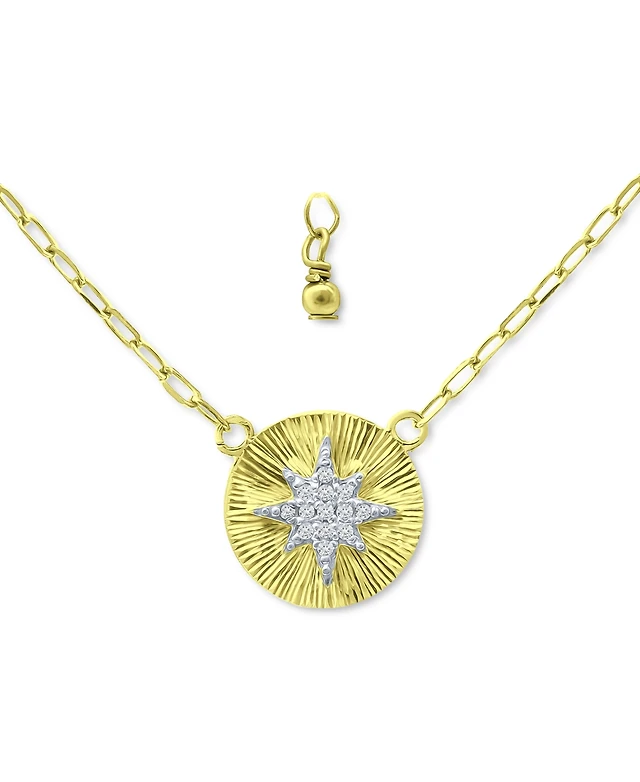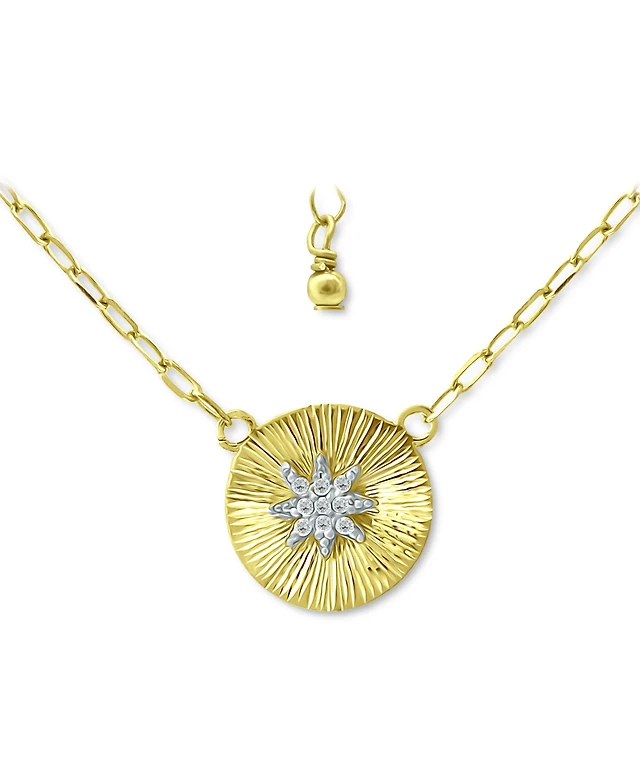Sterling Silver 14k Gold Plated with Cubic Zirconia 10-Point Starburst Pendant Necklace