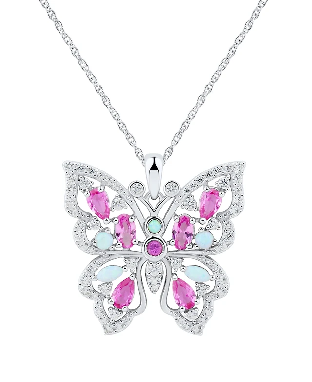 14k Yellow Gold Plated with Cubic Zirconia Double Heart Butterfly Pendant Necklace Sterling Silver
