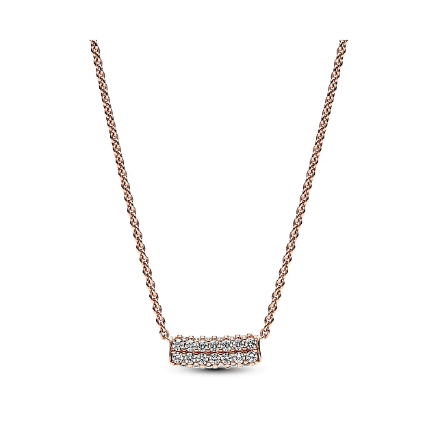 Pandora Timeless 14K Rose Gold-Plated Pave Cubic Zirconia Double-Row Bar Collier Necklace