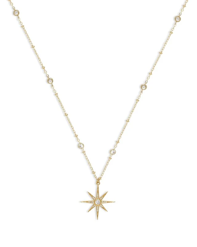 Cubic Zirconia Starburst Pendant Necklace, 21.5"-26.5"