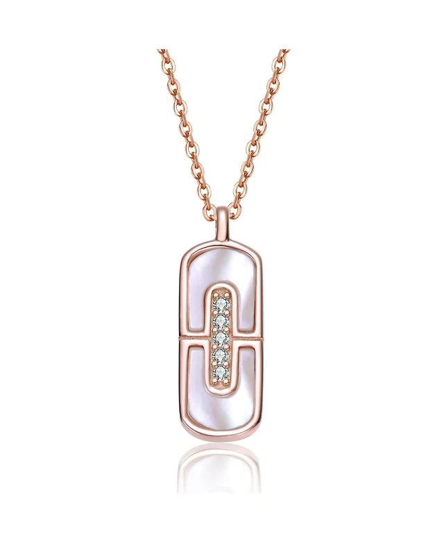 Rachel Glauber 18K Rose Gold Plated with Mother Of Pearl & Clear Cubic Zirconia Pendant Necklace