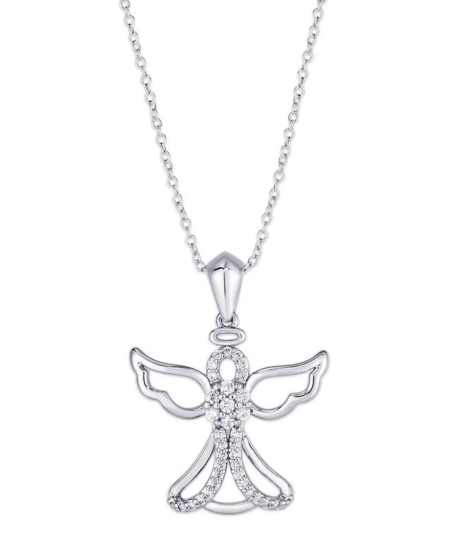 Macy's Silver Plated Brass Cubic Zirconia Pave Heart Necklace
