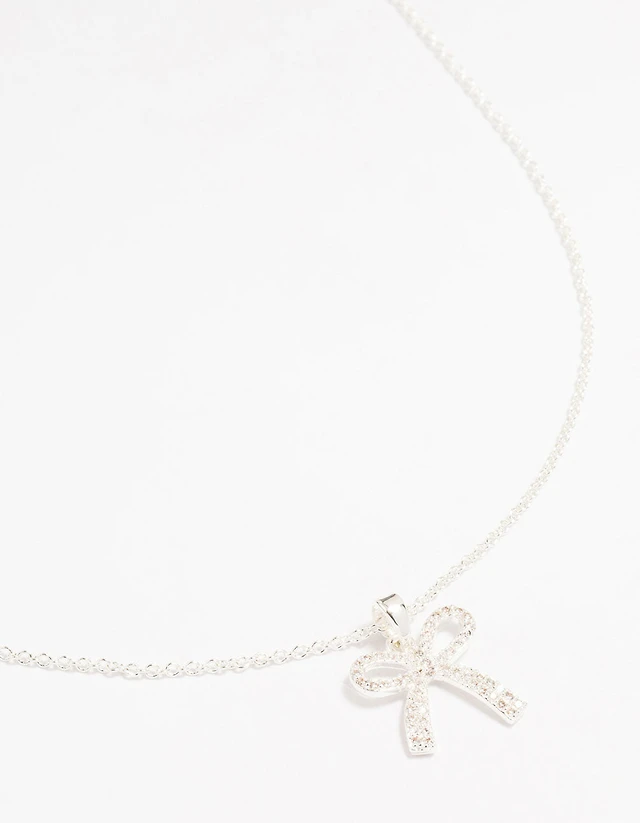 Sterling Silver White Gold plated Cubic Zirconia Swirl Knot Necklace