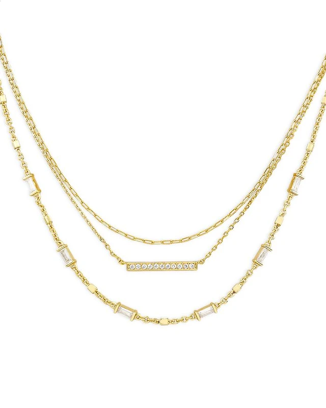 Waterproof Gold Plated Stainless Steel Cubic Zirconia Dainty Layered Necklace