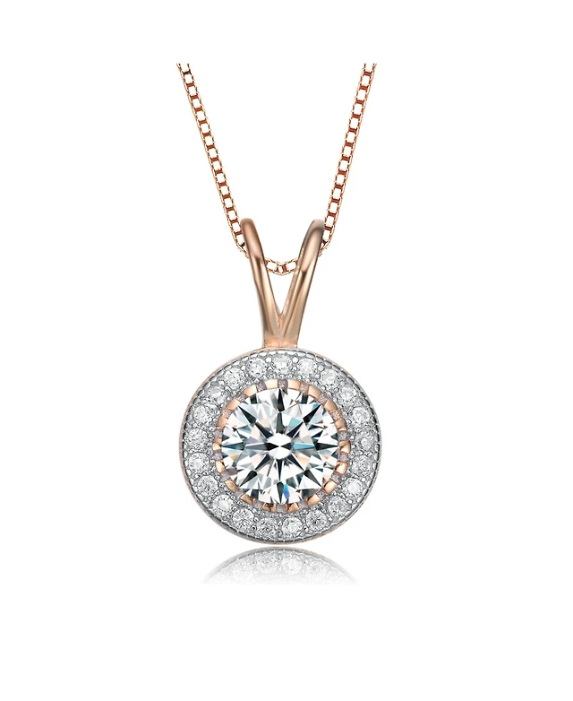 Rose Gold Plated Sterling Silver Cubic Zirconia Pear Halo Necklace