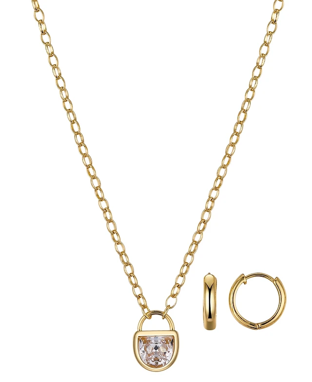 Unwritten Cubic Zirconia Initial Pendant Necklace and Stud Earring Set