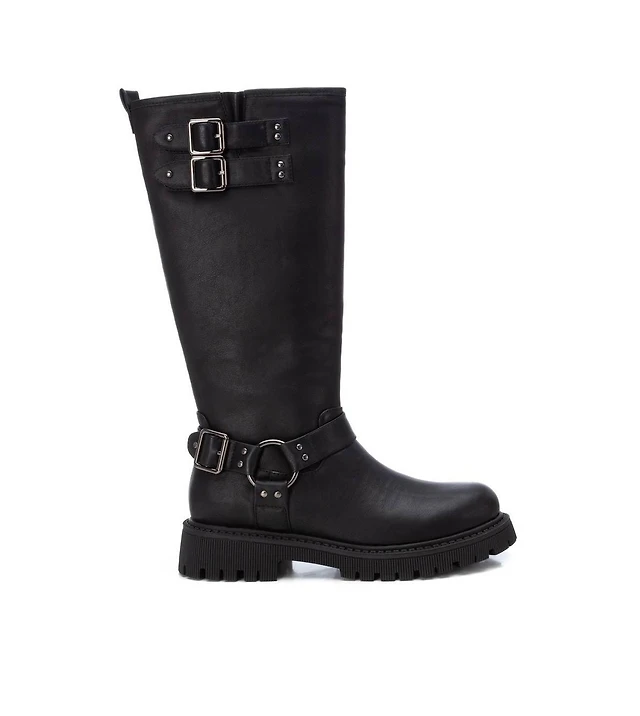 L Artiste Women s Limitless Leather Combat Boot with Floral Cutouts, Stud Accents & Rainbow Stitching