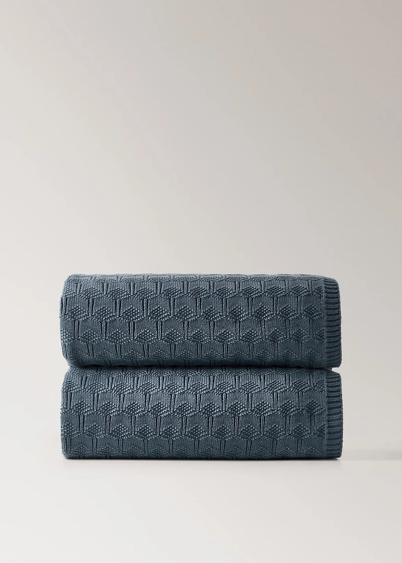 100% Cotton. Size: 70x100 cm. Children's blanket crafted from 100% cotton, ensuring softness and comfort for everyday use. It features an openwork fabric with a geometric diamond pattern in relief, providing texture and a sophisticated style. Ideal for sensitive skin, providing warmth and comfort without irritation.
