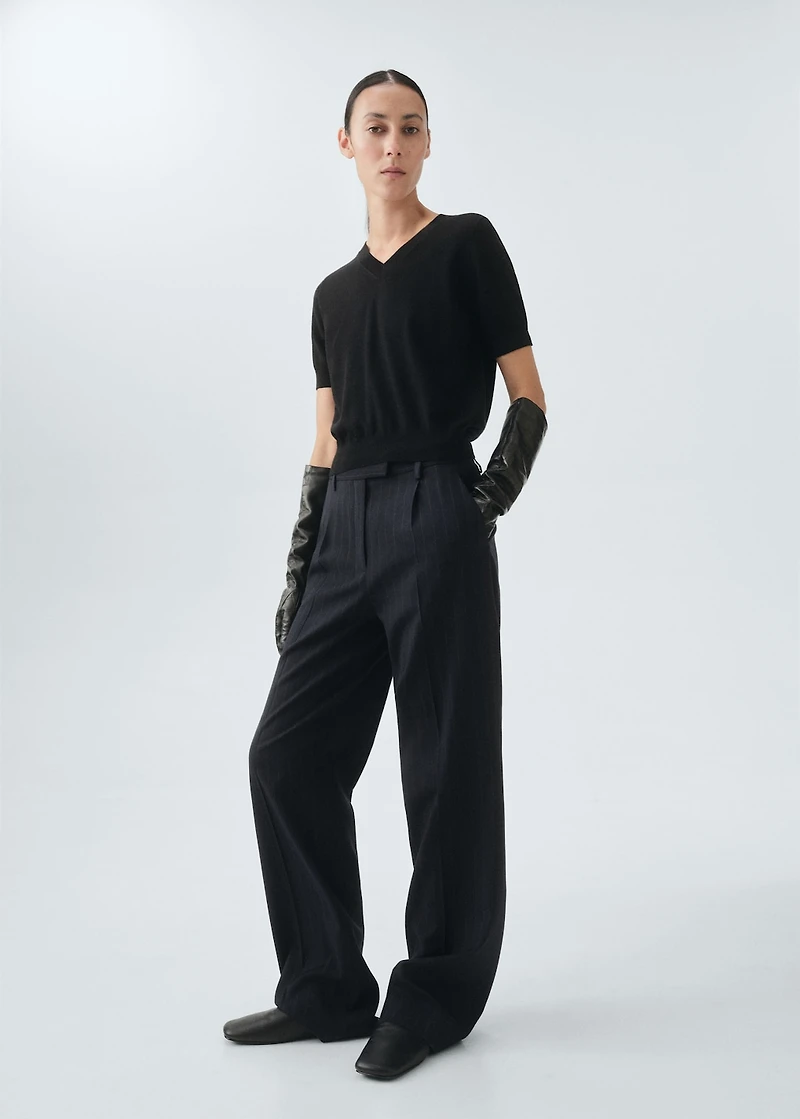 Crafted from 100% merino wool fine-knit fabric, this straight design features an elegant V-neck and short sleeves. No fastening. Selection Collection
