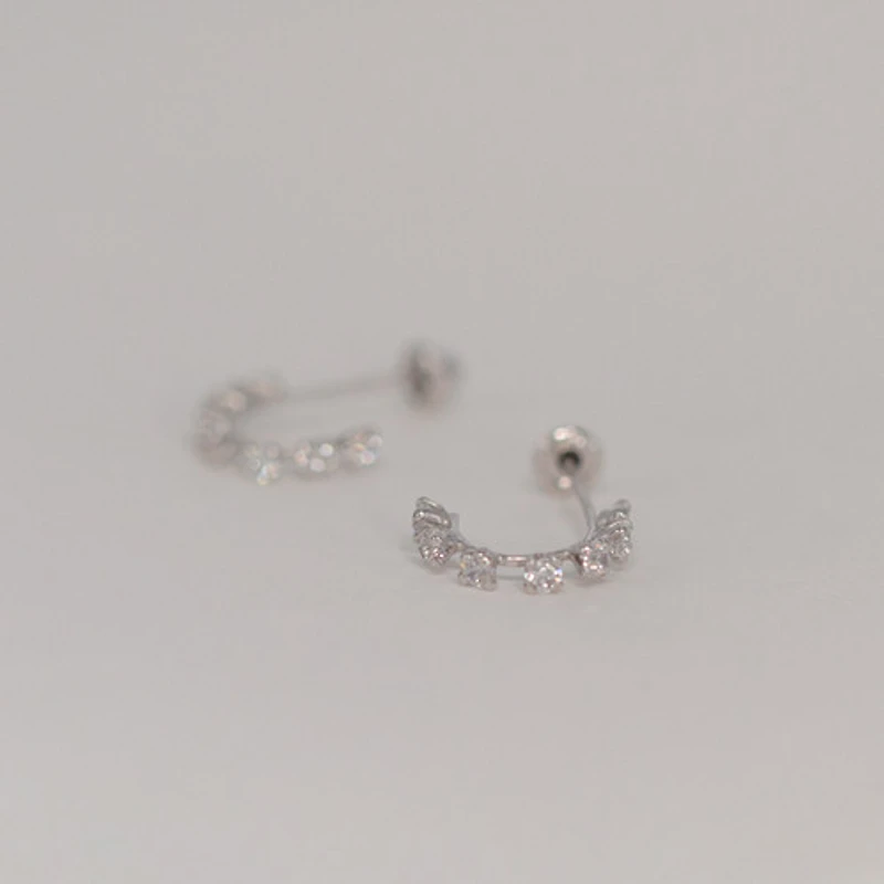 A sparkling little curve that knows how to make an entrance. These gem-studded studs catch the light with every move, giving “effortlessly extra” without even trying. Wear them solo for a subtle twinkle or stack them up to build your dream ear party.
