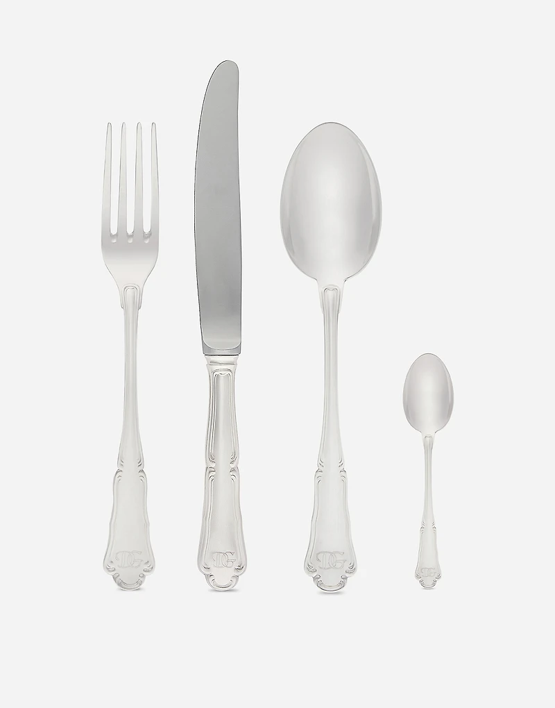 This 4-piece flatware set with a Baroque appeal is a symbolic summary of the dualism at the heart of Dolce&Gabbana’s DNA, a stylistic element that shifts between past and future, artisanship and technology, tradition and innovation.