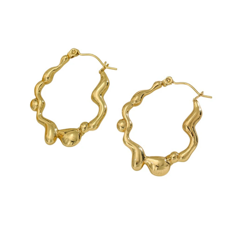 Artful, wavy, and a little bit edgy — these hoops look like liquid gold frozen mid-drip. They’re bold enough to make a statement, yet lightweight enough for all-day wear. Pair them with a sleek bun or beachy waves — either way, they’ll steal the spotlight.