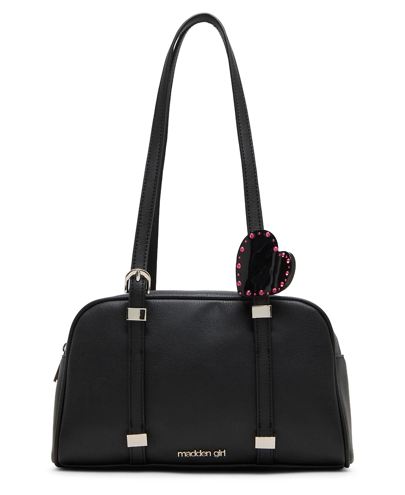 Compact yet stylish, this bowler bag is designed with a structured shape, double handles, and a playful heart hair clip for a touch of fun. Perfect for day-to-night wear.