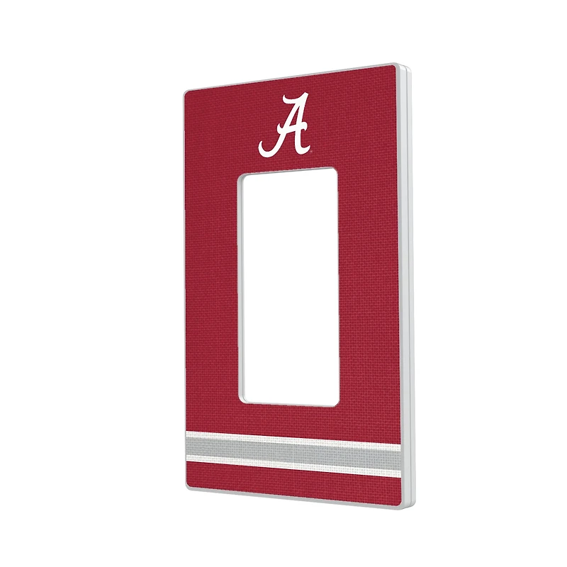Take your Alabama Crimson Tide collection to the next level with this Stripe Design Single Rocker Lightswitch Plate. The printed graphics make this accessory a must-have in your home, office or fan cave. No one will doubt your Alabama Crimson Tide fandom with this epic piece on display.