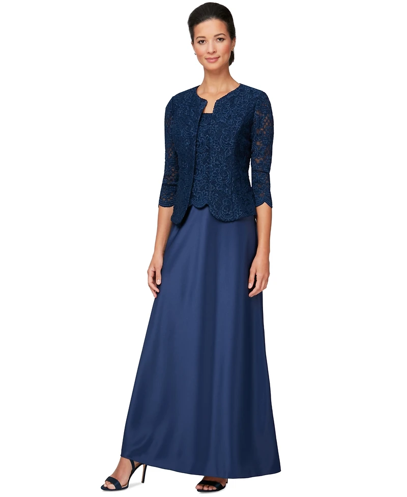 Alex Evenings Lace Jacket & Lace-Top Gown