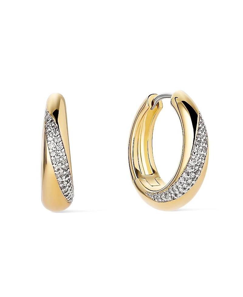 Hoop earrings with a twist, these bold hoops plated in 14k gold feature a classic silhouette with a twist of sparkly gemstones. The perfect way to elevate your everyday stack, these versatile earrings can be worn on their own or with our Giulia hoops for an even bolder look. Water-resistant & tarnishproof.
