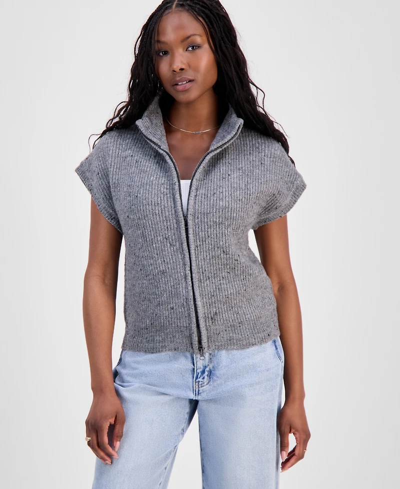 And Now This Petite Zip-Up Cap-Sleeve Sweater