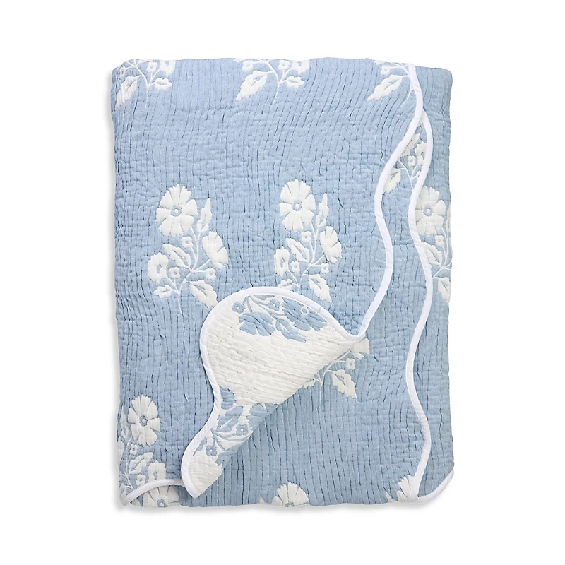 Aqua Floral Scalloped Reversible Quilt Set, Twin - Exclusive