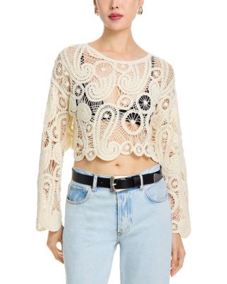Shop Aqua Long Sleeved Paisley Crochet Top - Exclusive in Los Angeles, CA