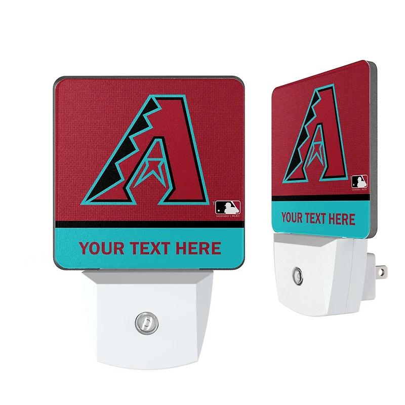 We want fans to celebrate their fandom by customizing and personalizing certain products. For these customizable products, including jerseys, we invite customers to tell us how they would like their preferred name or other text to appear by typing that text into the field indicated. However, just because a customer is able to type proposed customization text into the field and is able to complete the order through the website, not all proposed customization text will be accepted. Please note, Fanatics may reject and cancel any customization order for any reason, including for messages that are deemed offensive or inappropriate. Light up any space in your house with this Arizona Diamondbacks Personalized 2-Piece Nightlight Set. These nightlights feature sensors that will turn on when there's a lack of ambient light. With printed Arizona Diamondbacks graphics, this set will add some team spirit to any room.