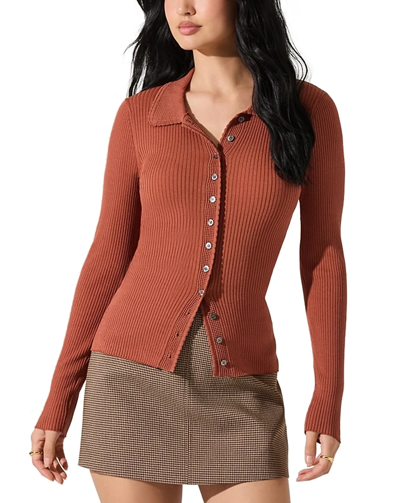 Astr the Label Keren Cardigan.Color:Rust.Size:XS.Material:50% viscose, 40% polyester, 10% silk.Tops.