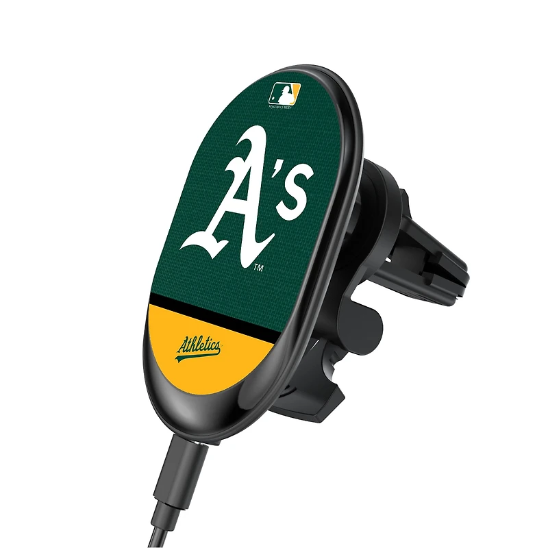 Keep your cellphone charged while on the go with this Athletics Wireless Magnetic Car Charger. Compatible with Apple and Samsung devices, this charger features a self-adjusting cradle, quick charge mode, and a charge distance of up to 10mm. Complete with printed Athletics graphics, it will ensure your loyalty is present every time you go to charge your cellular device in your car!