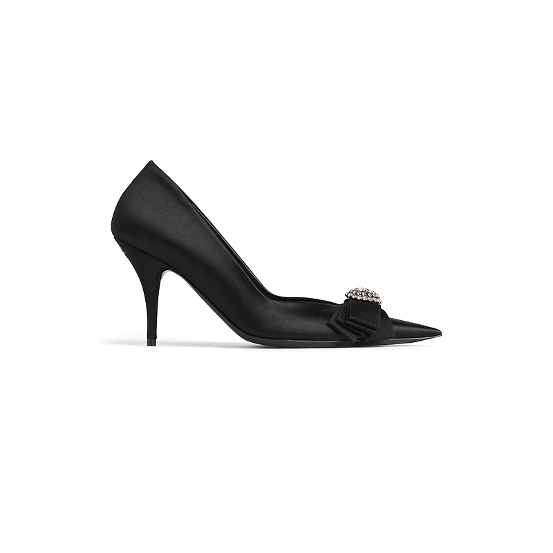 Avenue Palazzo 90mm Pump in black satin and rhinestones