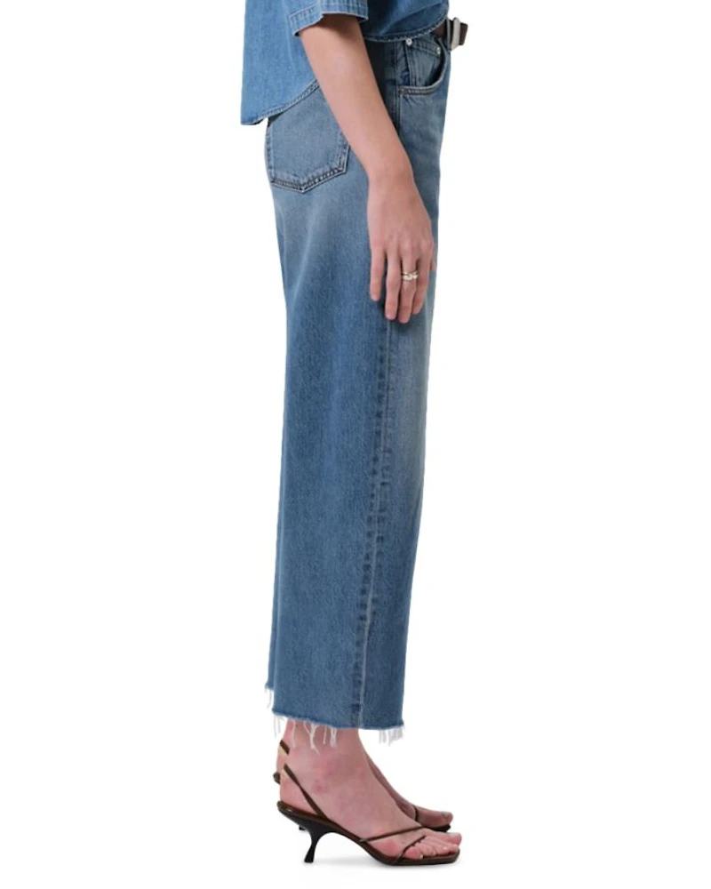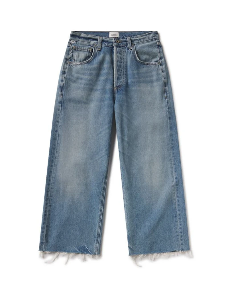 The Ayla Raw Hem Crop, inspired by a reworked vintage silhouette, features a slightly relaxed but flattering top block that transitions into a roomy leg with a raw hem finish.