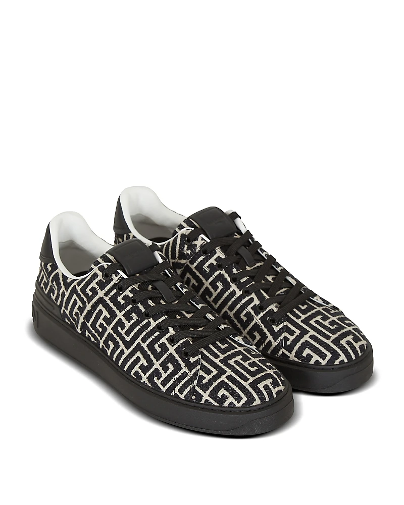 Balmain Men's Monogram B-Court Trainers.Color:Black.Size:7US / 40EU.Material:84% Cotton / 16% Polyester.