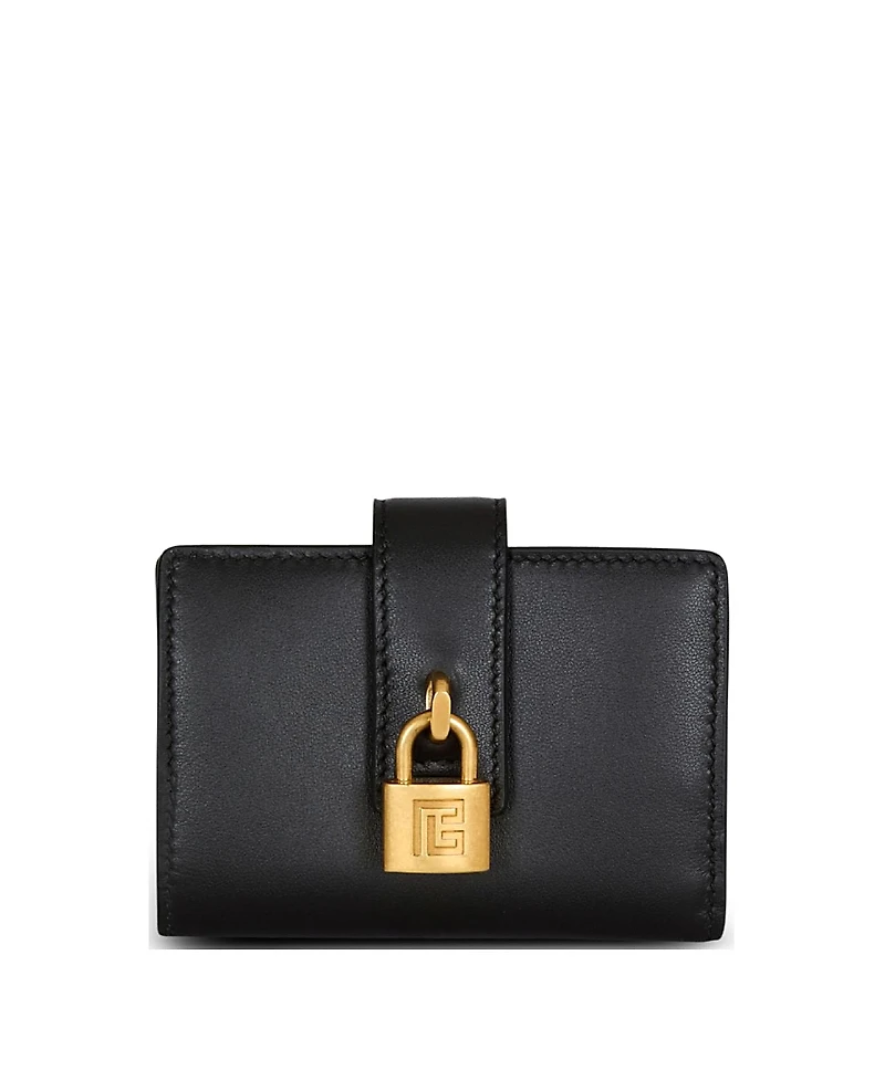 Balmain Pulse Leather Purse.Color:Black.Size:ONE SIZE.Material:100% Lambskin.Wallets.