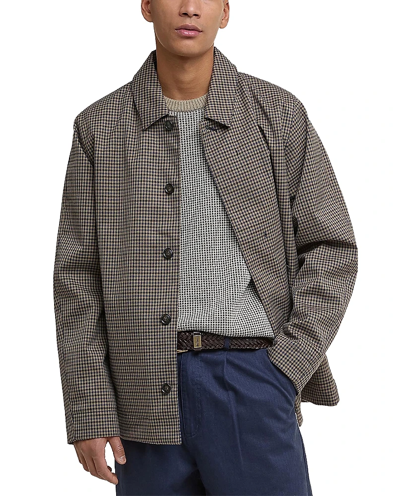 Barbour Short Lorden Jacket.Color:Stone/ Navy Check.Size:Large.Material:Outer: Face: 65% polyester/33% viscose/2% elastane; membrane: 100% polyurethane; lining: 100% polyester.Jackets.