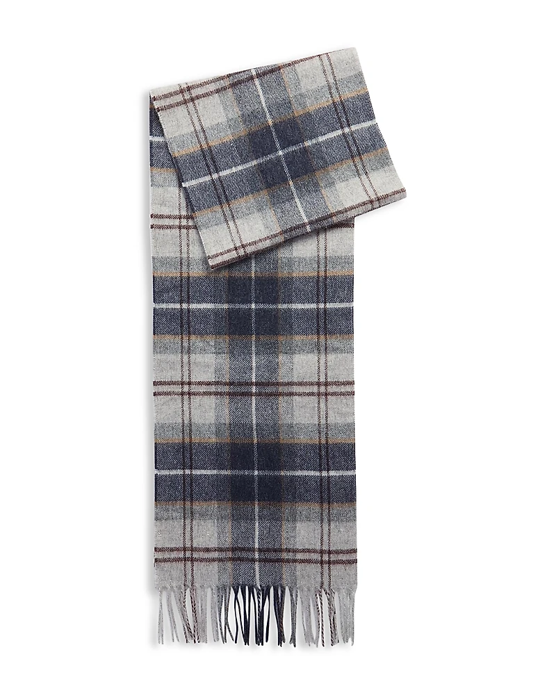 Barbour Tartan Scarf.Color:Grey Midnight.Size:One Size.Material:90% wool/10% cashmere.Scarves & Wraps.
