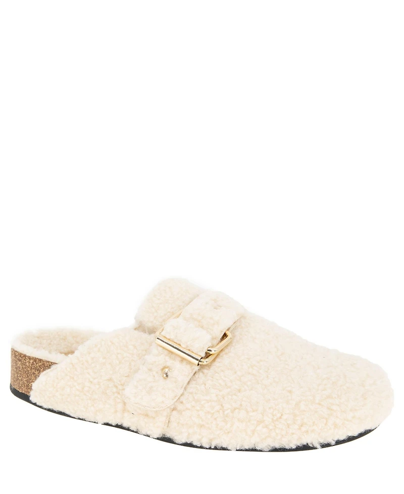 Slide into style with our Haisley-2 slip-on clog by BCBGeneration, featuring faux fur lining and a statement gold buckle and a comfortable, easy-to-wear design that blends polish with everyday ease.