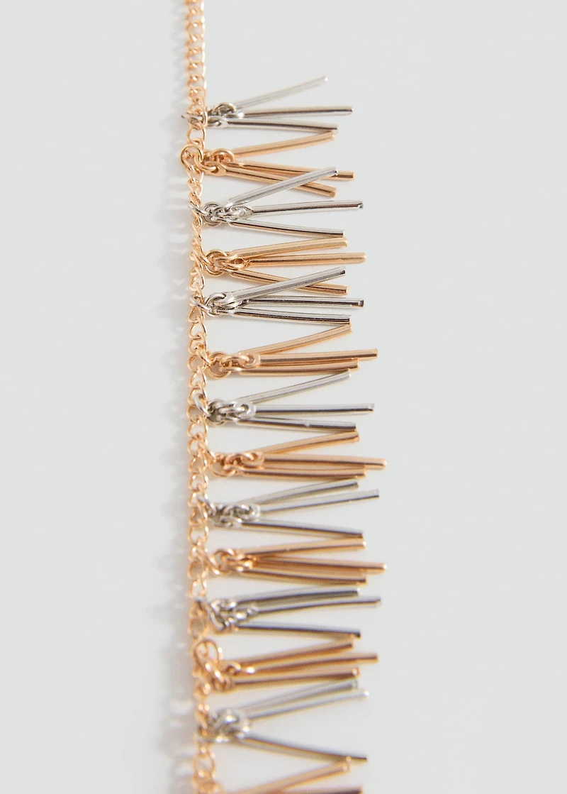 Fine metal chain. Hanging beads. Metal beads. Hook closure.