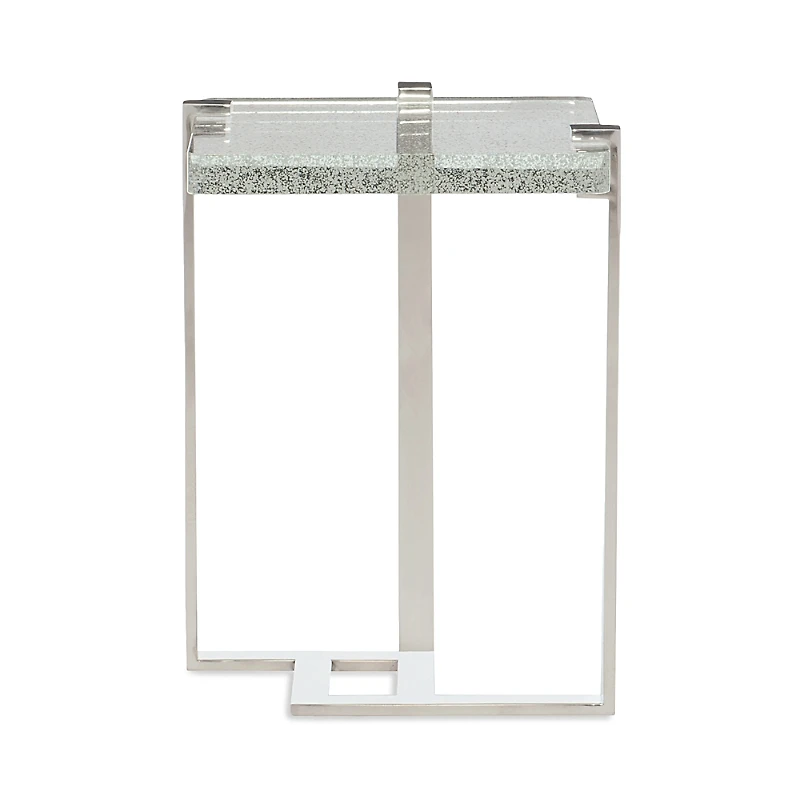 Bernhardt Mott Accent Table.Color:Stainless.Material:Tubular polished stainless steel base; bubble glass top.