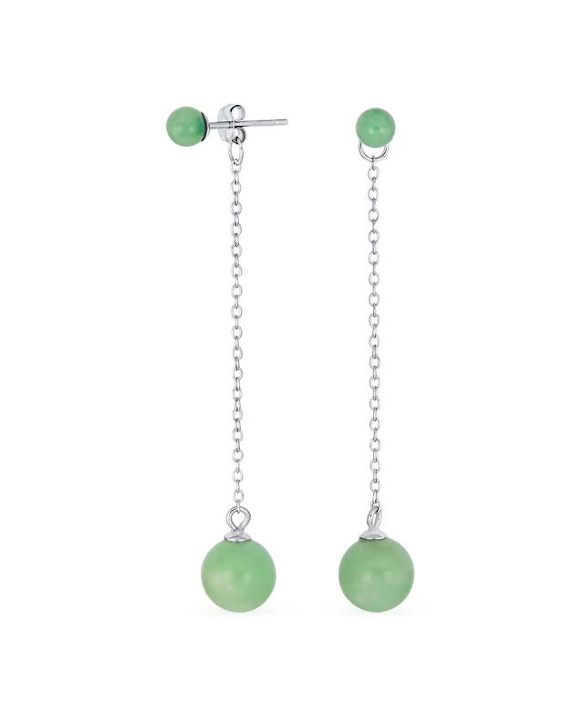 Bling Jewelry Classic Simple Dangle Double Round Natural Teal Blue Green Jade 2 Drop Ball Earrings .925 Sterling Silver 10MM