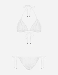 - • Adjustable triangle bikini top with ties on the neck and back and DG logo hook.