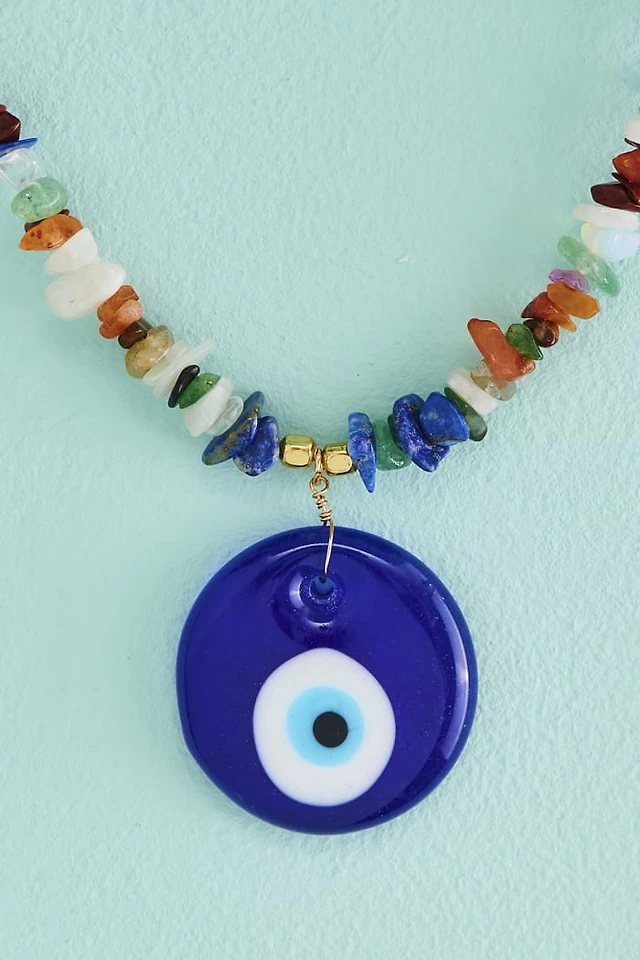Buy Glass Evil Eye Stone Chip Necklace Online at Earthbound Trading