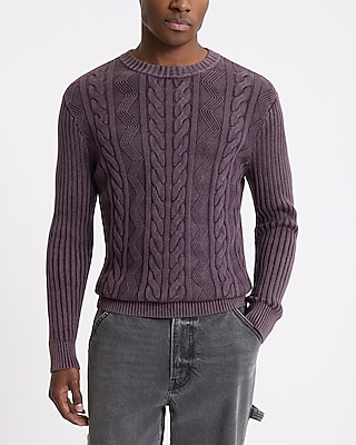 Cable Knit Acid Wash Cotton Sweater