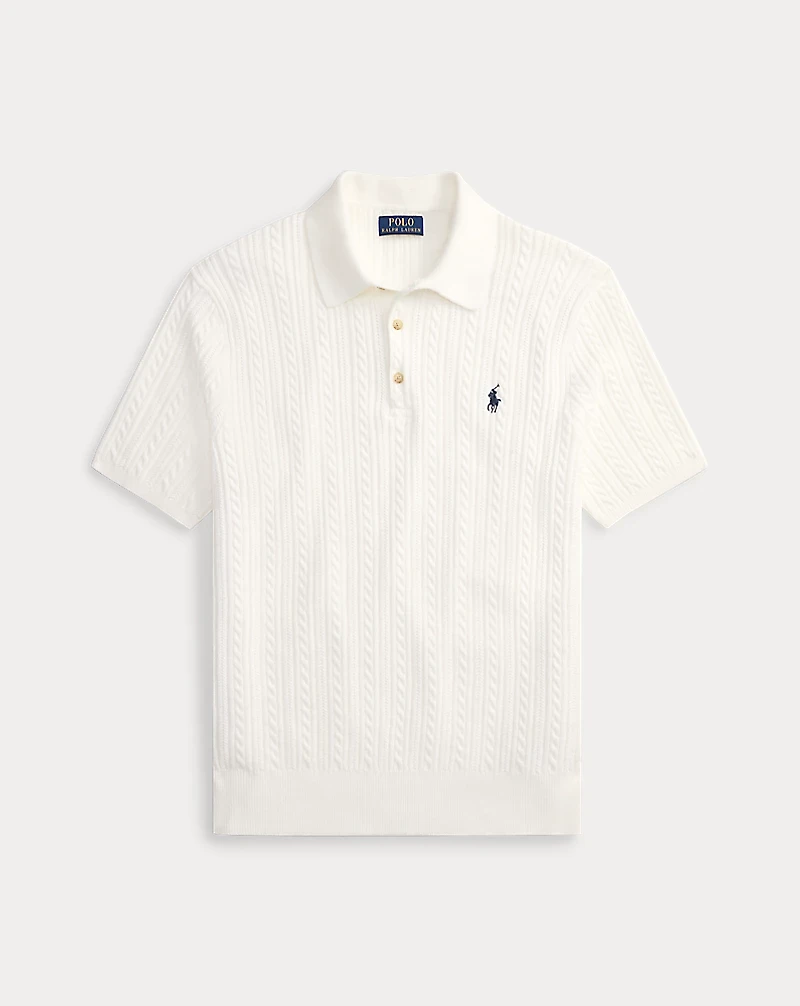 This cable-knit sweater combines a silhouette inspired by Ralph Lauren’s timeless Polo shirt with featherweight cotton yarn that is combed with fine brushes, resulting in a softer, more durable garment.