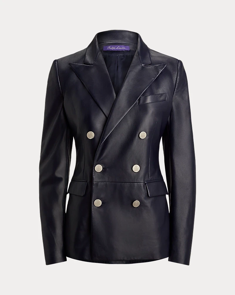 Debuted as a men’s sporting style in 19th-century Britain, the double-breasted jacket is one of Ralph Lauren’s enduring signatures. Accented with our “RL” and crown–engraved polished buttons, this version of the iconic Camden is crafted in Italy from supple nappa lambskin and lined with a signature jacquard fabric.