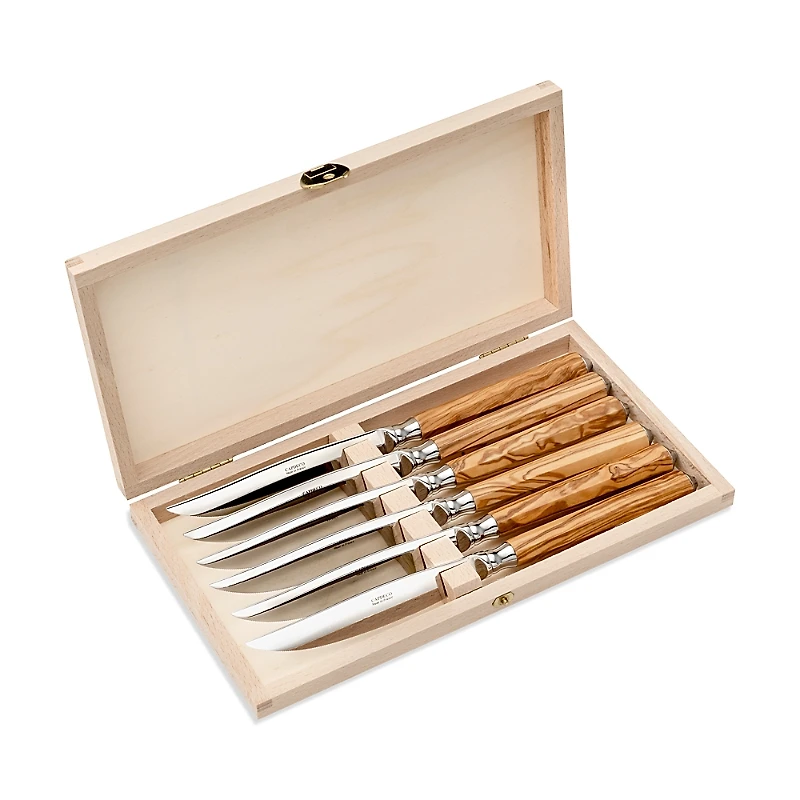 Capdeco Galaxie Olive Wood Steak Knives, Set of 6.Color:Olive Wood.Material:Blade: 18/10 stainless steel; handle: olive wood.Cutlery.