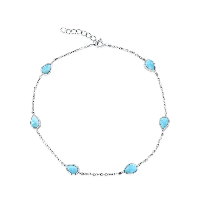 Caribbean Treasures Sterling Silver, Pearshaped Larimar Anklet