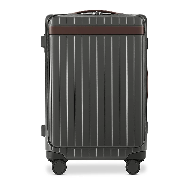 Carl Friedrik The Carry On X Spinner Suitcase.Color:Grey/Cognac.Material:Shell: polycarbonate; frame: aluminum; trim: leather; lining: polyester.Luggage.