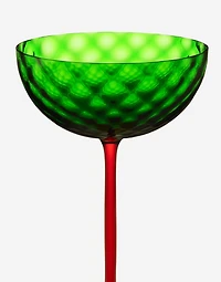 - Mouth blown, one of the most ancient glassmaking techniques, and coloured in pasta, this coupe glass is characterized by the typically Venetian diamond Balloton pattern. The glass is embellished with a delicate serigraphed signature. The cup, stem, and foot are marked by a picturesque chromatic combination.