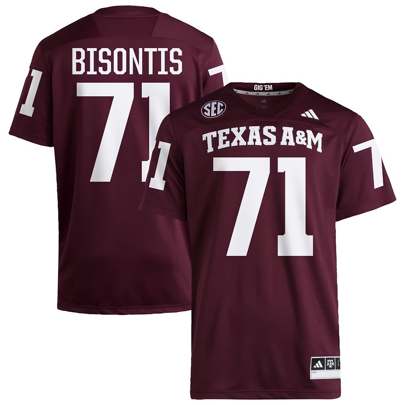 Chase Bisontis Men's adidas Maroon Texas A&M Aggies NIL Pick-A-Player Home Premier Football Jersey