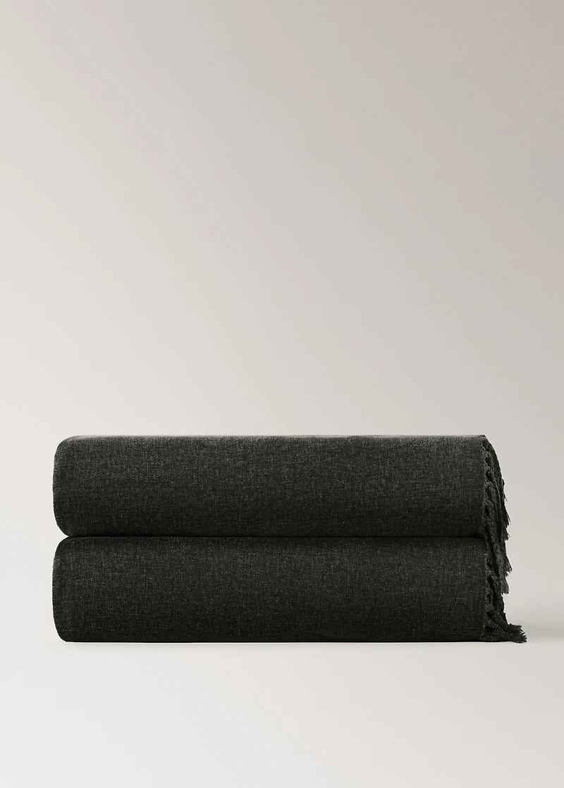 Size: 130x180 cm. Chenille fabric. Fringe detail. Moderately warm fabric. Ideal for transitional seasons. Ideal for those looking for a smooth, long-lasting texture, with a sophisticated finish and resistant to daily use. Creates a warm and cozy atmosphere. Available in various colors.