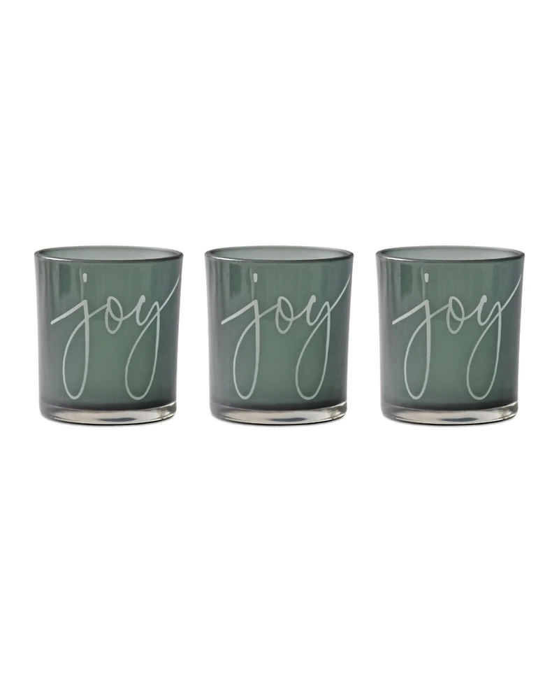 Illuminate your home this holiday season with this stunning set of Green Glass Candle Holders. Featuring three pieces, this set is a great fit for your modern or transitional style of holiday decor. The traditional "Joy" sentiment paired with the trendy sage green tone is the perfect combination to create a memorable display. The quality glass composition is sure to endure for seasons to come. Illuminate the set by adding a real wax or Led candle to each holder.