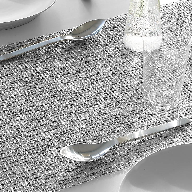 The ethereal appearance of Chilewich's innovative textile, Woven Lattice, has been likened to crystal, jewels and even ice, but this modern textile is durable and maintenance free. Chilewich has truly brought something new to the table. Measures 14" x 72".